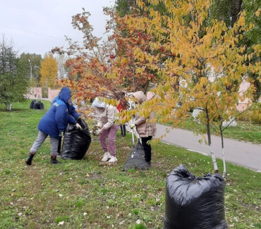 В субботнике приняли участие 45 человек, собрано 110 мешков по 160 л. сухостоя и листвы.